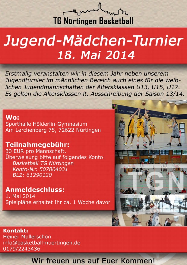 Erstmalig veranstalten wir in diesem Jahr neben unserem Jugendturnier im männlichen Bereich auch eines für die weiblichen Jugendmannschaften der Altersklassen U13, U15, U17. Es gelten die Altersklassen lt. Ausschreibung der Saison 13/14.